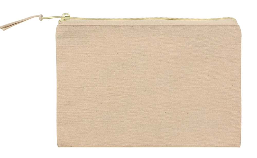 Bolsa 100% algodão 310g. Tem um ótimo tamanho para bolsa cosmética. Com fecho em nylon.